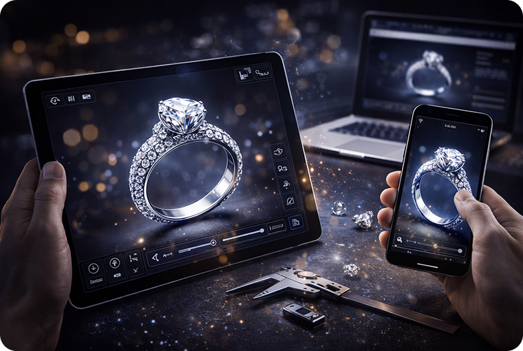 JewelX3D combines deep jewelry craftsmanship knowledge with real-time 3D technology to help manufacturers and retailers present products with unmatched realism, precision, and control.